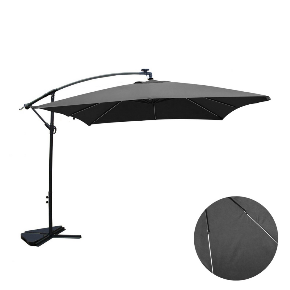 Parasol Néon LED déporté 3 x 3 m gris SOLENZARA