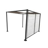 Pergola gris fonce et taupe, toiles coulissantes