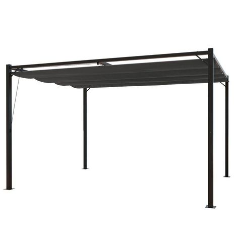 Pergola autoportante 3 x 4 m en acier avec toile grise TUSA