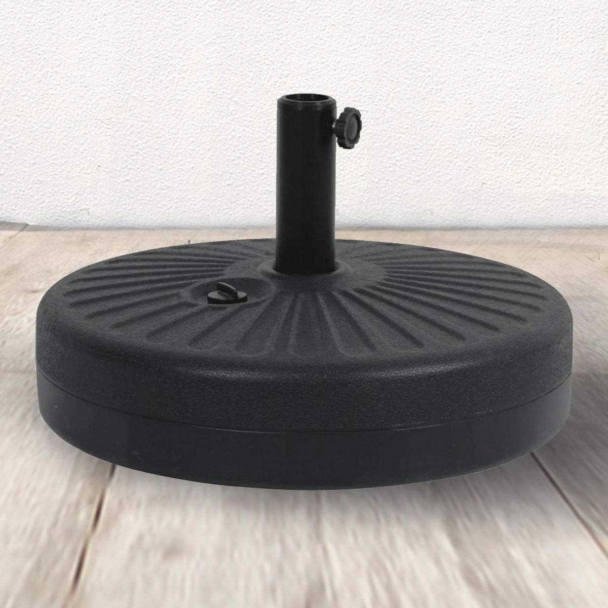 Ce pied de parasol sera ideal pour maintenir votre parasol. Sa fabrication en plastique ultra-resistant vous promet robustesse et longevite et permet une bonne stabilite. Sa molette de serrage vous permettra de bien adapter le pied à votre parasol. Il pèse jusqu'à 28 kg rempli d'eau.