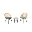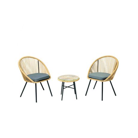 Craquez pour ce salon de balcon detente hyper tendance ! Sa couleur naturelle et ses details en cordes donne au salon un aspect rotin. Il est ideal pour des petits espaces exterieurs et s'integrera notamment parfaitement sur votre balcon. Les 2 fauteuils sont dotes de coussins ce qui vous garantit un confort optimal. Sa petite table d'appoint avec son plateau en verre est très pratique pour garder à portee de main de quoi vous desalterer. Sa structure en acier recouverte de peinture epoxy offre robustesse et longevite à votre salon de balcon. Ce petit salon apportera la touche cosy à votre exterieur alors n'hesitez plus et foncez !