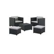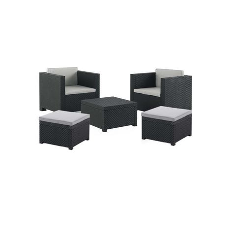 Ce salon de jardin en resine tressee comprend egalement une table basse et 2 poufs, ideal pour recevoir vos invites pour des moments chaleureux !