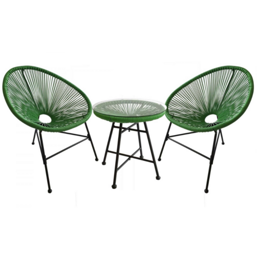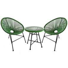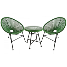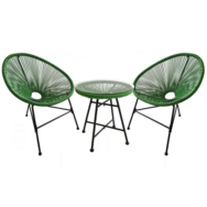 Le design et le confort de l'ensemble Acapulco ne vous laissera pas indifferent ! Inspire des fauteuils Mexicains des annees 50, l'assise des fauteuils est agreable et confortable de par la composition en fils de polyethylène, un materiau très resistant aux conditions naturelles qui se detend pour s'adapter à la morphologie du corps. L'armature de la table basse ainsi que des fauteuils est en acier finition epoxy. C'est un produit qui possède une duree de vie longue et qui se conserve très bien au fils des annees. Sa table basse est très pratique pour garder vos boissons, livres ou encore crème solaire et passer un moment de detente et de plaisir inoubliable !