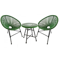 Salon de jardin 2 fauteuils ronds et table basse vert ACAPULCO
