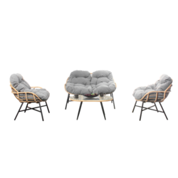 Caractéristiques techniques Nombre de places : 4Type de salon de jardin : DétenteCouleur principale : RotinCouleur secondaire : NoirForme de la table : OvaleMatière : Résine aspect rotinMatière structure : AcierMatière plateau de table : Verre trempéAvec coussin : OuiNombre de coussins : 4Couleur de
