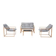 Salon de jardin 4 places contemporain brun et coussins gris RABAT
