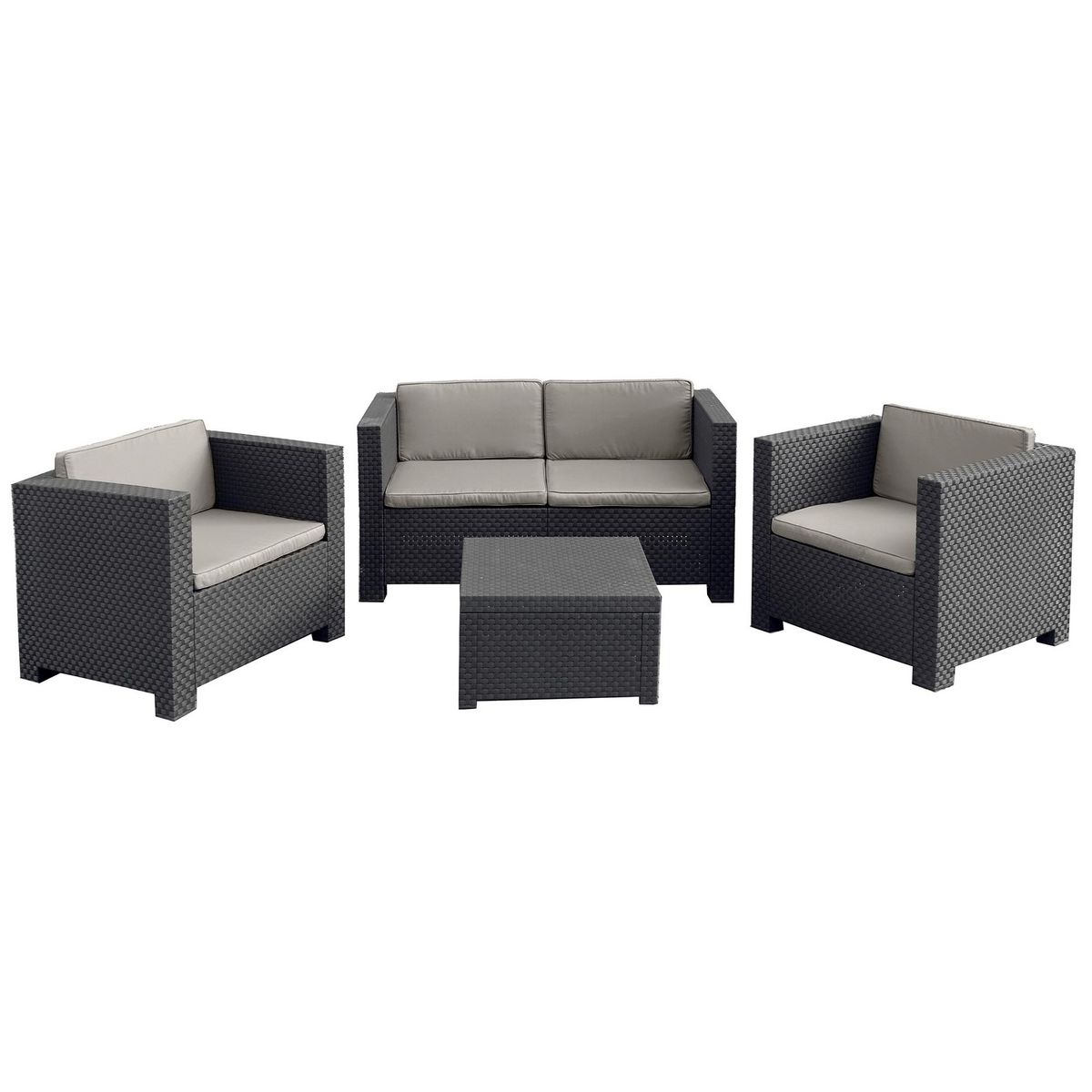 Salon de jardin 4 places effet résine injectée gris + coffre ANKARA