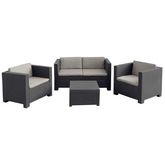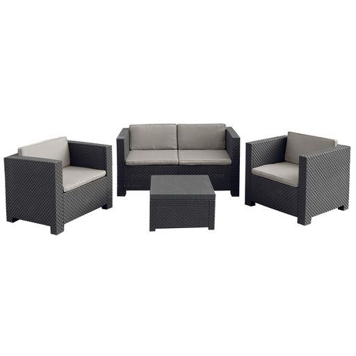Parfait pour créer un cadre extérieur pour vous et vos invités afin de vous détendre dans le confort. Ce salon de jardin 4 places en résine injectée résiste aux intempéries. Cet ensemble de 4 pièces comprend des coussins résistants à l'eau, déhoussables, et lavables, une banquette 2 places, deux fauteuils avec accoudoirs et une table/coffre pour votre rangement.