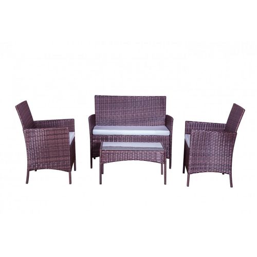 Salon de jardin 4 places en résine tressée marron et blanc MYKONOS