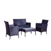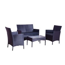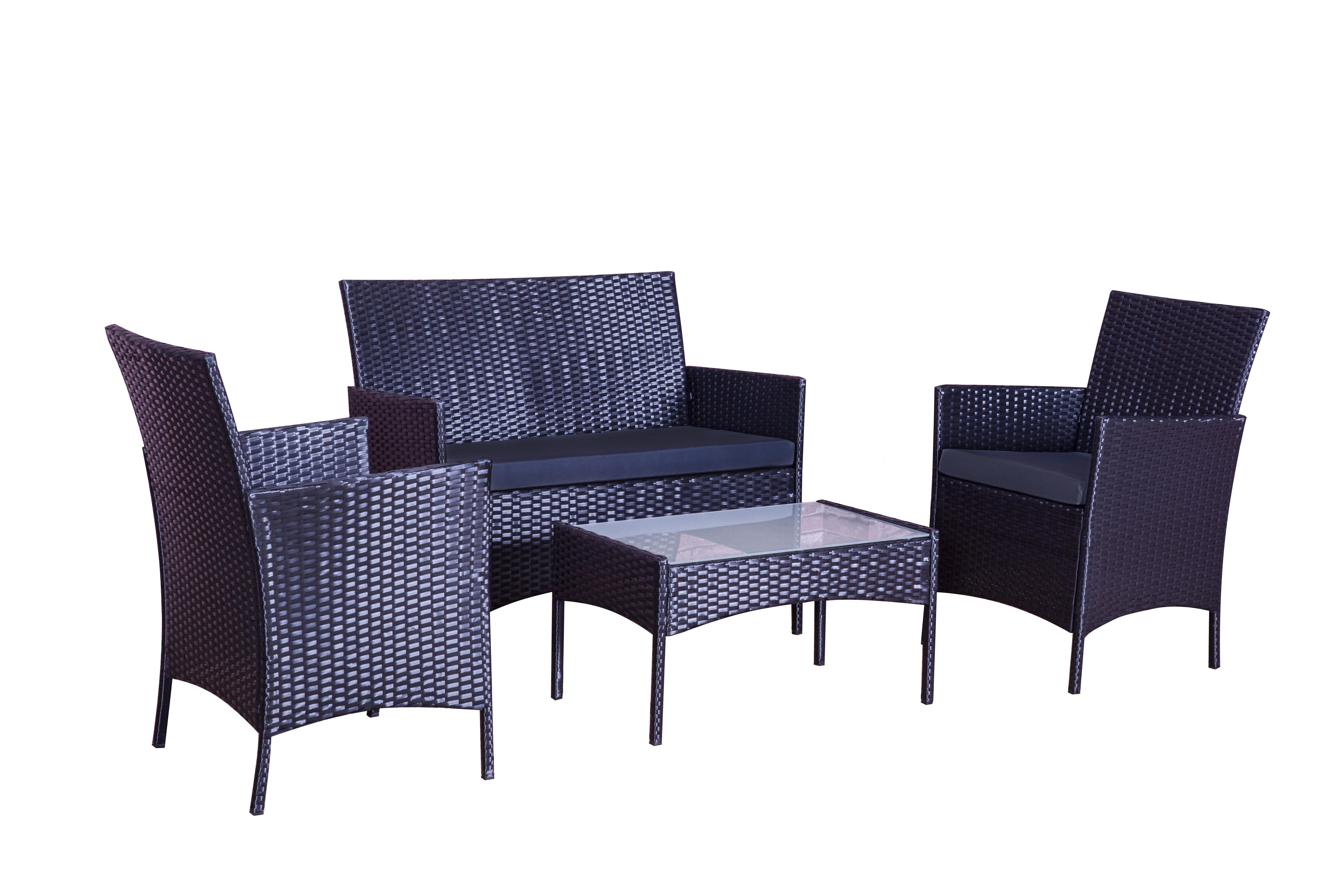 Salon de jardin 4 places en résine tressée Noir et coussins noirs MYKONOS