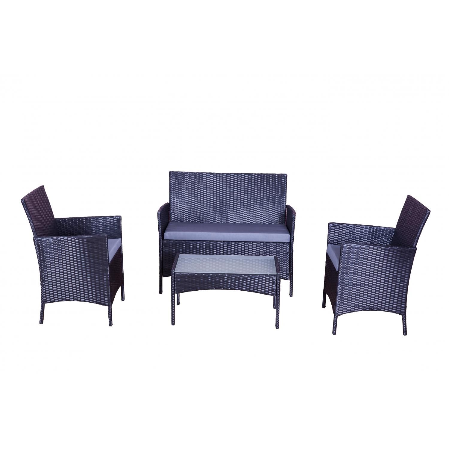 Salon de jardin 4 places en résine tressée noir et gris MYKONOS