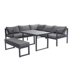 Salon de jardin 6 places gris foncé avec canapé et banc MARBELLA