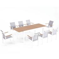 Salon de jardin 8 places aluminium blanc et bois TIJUANA