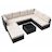 Caractéristiques techniques Nombre de places : 8Ensemble complet de jardin composé de : 3 sofas, 2 poufs, 1 table basse, 8 coussinsCouleur : NoirCouleur des coussins : BeigeCoussins déhoussables : OuiNombre de coussins : 8Structure : en kit, tubes métalliquesPoids maximum supporté par assise : 130 k
