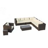 Salon de jardin 8 places en résine tressée noir et blanc SALENTO
