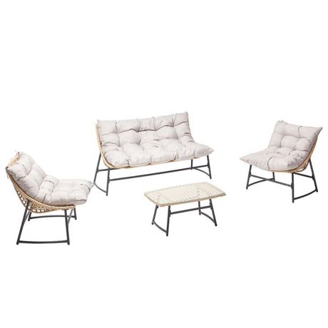 Salon de jardin bas 4 places en résine rotin & acier GUAHANA