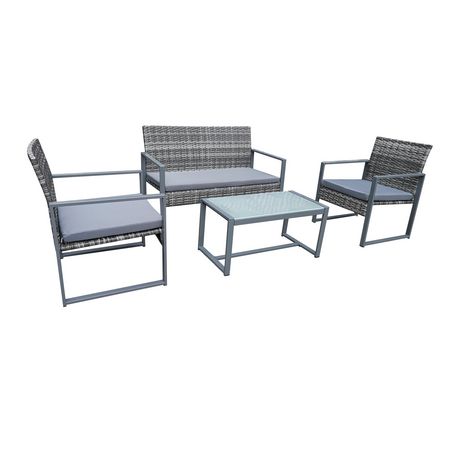Salon de jardin bas 4 places résine tressée gris foncé ESNA