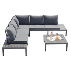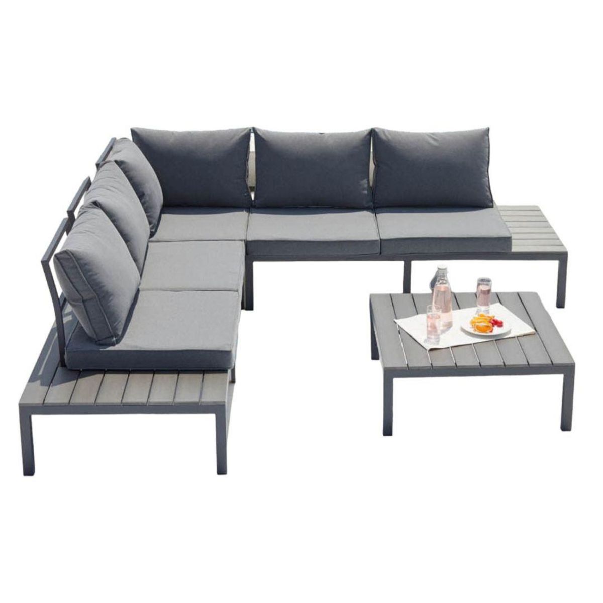 Salon de jardin bas 5 places en aluminium gris foncé FIRA