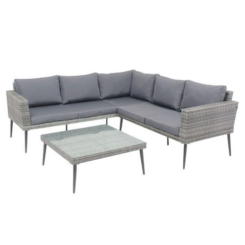 Salon de jardin bas 5 places en résine tressée gris TEFARI