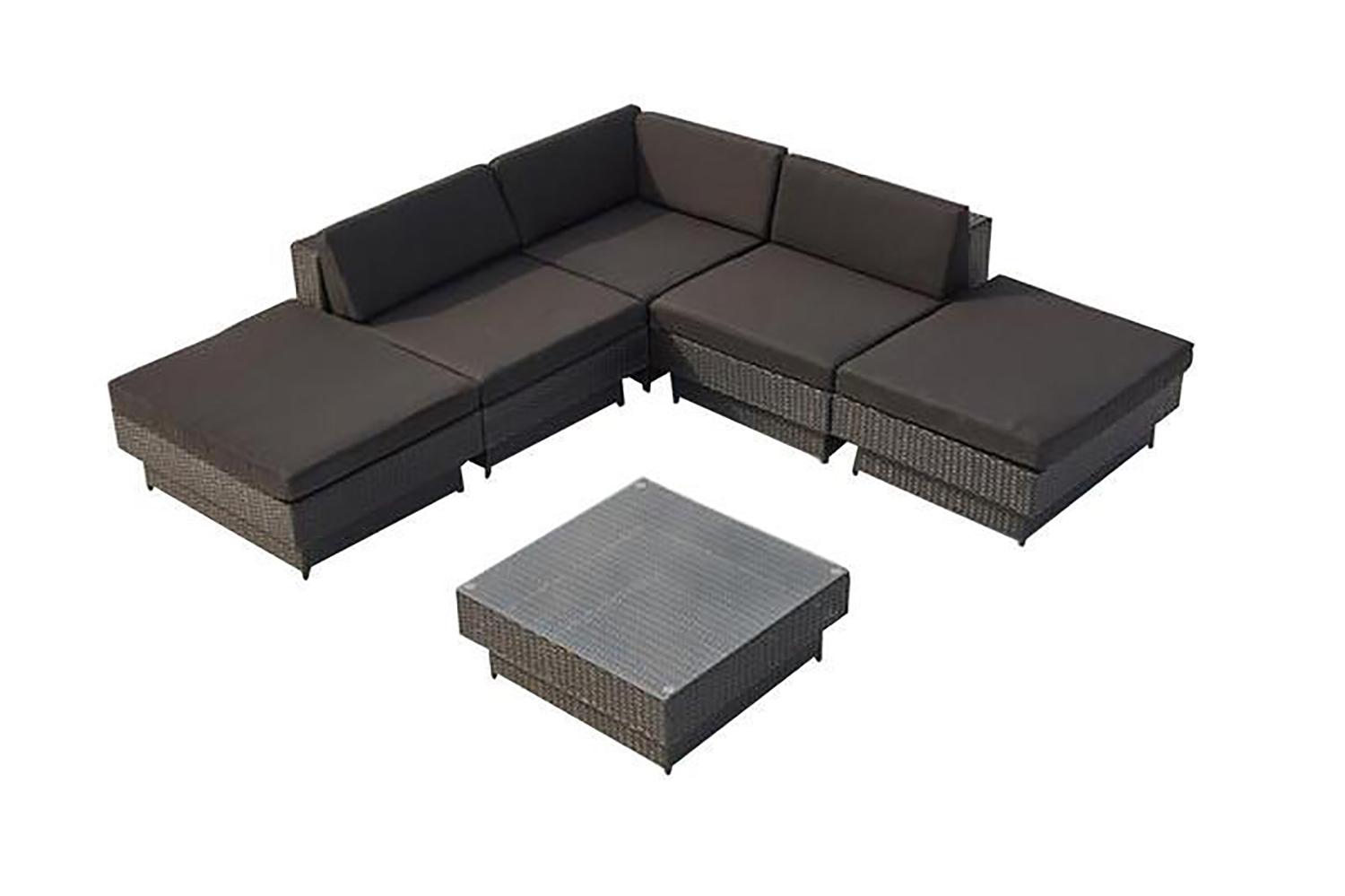 Salon de jardin d'angle 5 places en résine tressée noir AMORGOS