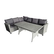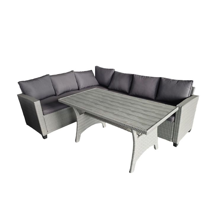 Salon de jardin d'angle 6 places en résine tressée grise avec table TAHAA