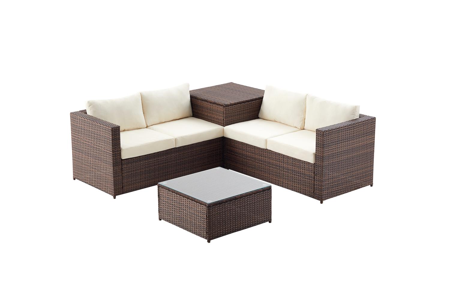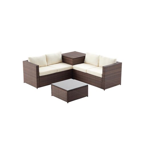 Salon de jardin en résine tressée 4 places avec coffre intégré marron et blanc SILANG