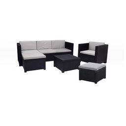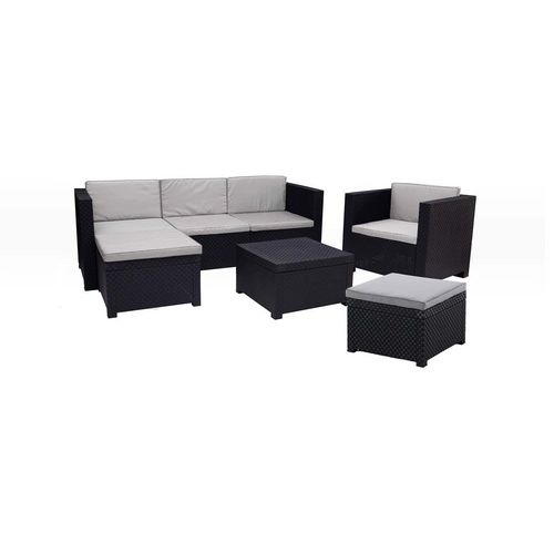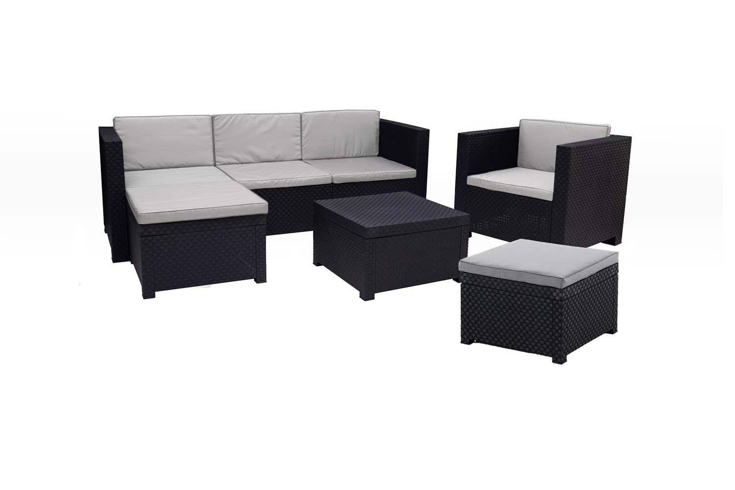 Salon de jardin en résine tressée 6 places gris-noir MANHATTAN