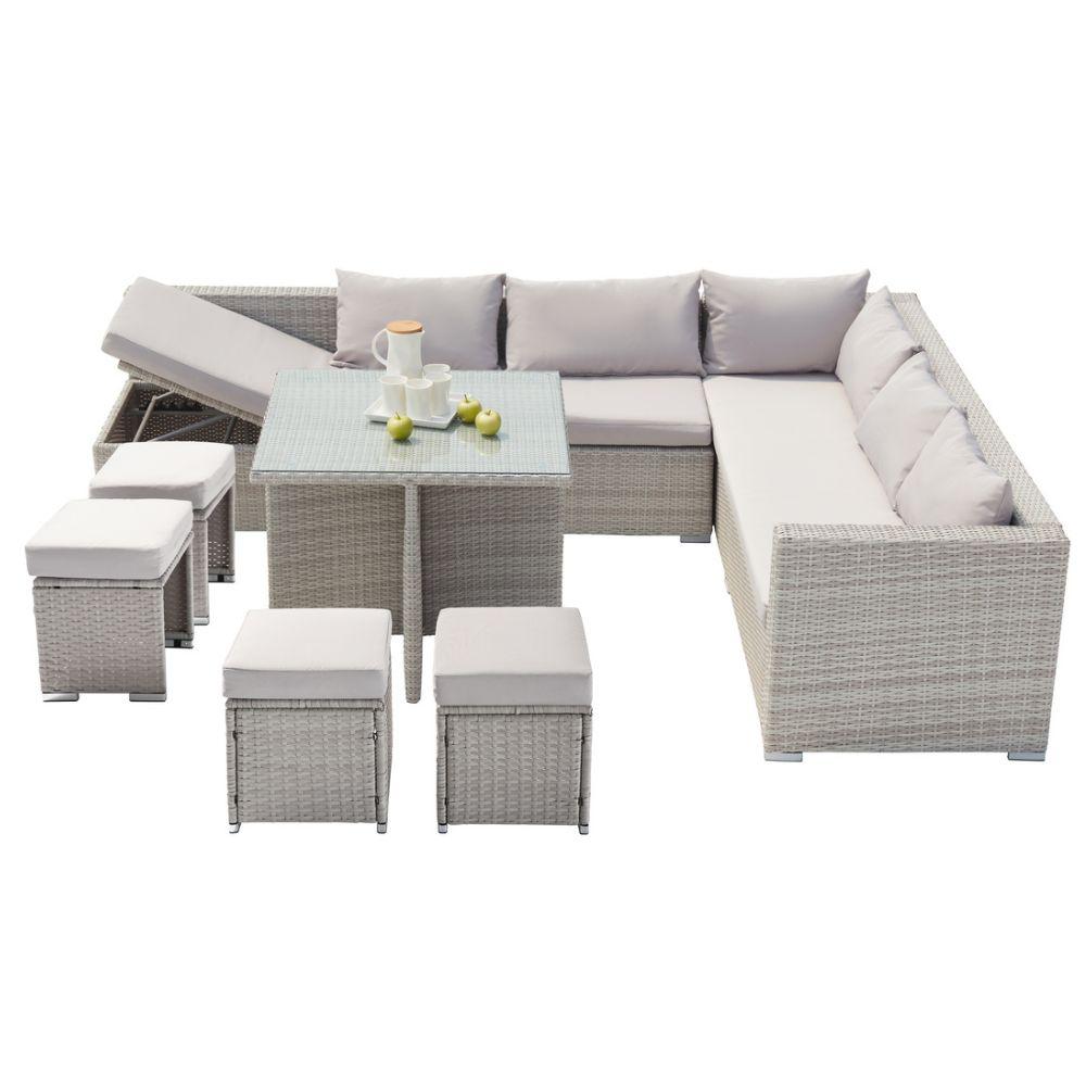 Salon de jardin encastrable 10 places en résine tressée gris SAMOA
