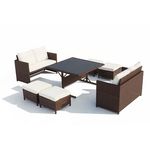 Salon de jardin encastrable 8 places en résine marron- blanc NOUMÉA
