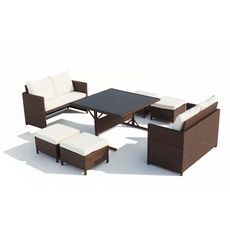 Envie d'un salon de jardin encastrable ? L'ensemble de jardin Noumea 8 places en resine tressee gris est en mesure de satisfaire vos envies. Compose de deux canapes 2 places et de 4 poufs confortables, il peut acceuillir jusqu'à 8 personnes. Sa table en verre trempe noir de 5 mm d'epaisseur est encastree dans le cadre en resine prevu à cet effet.