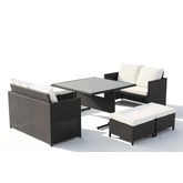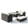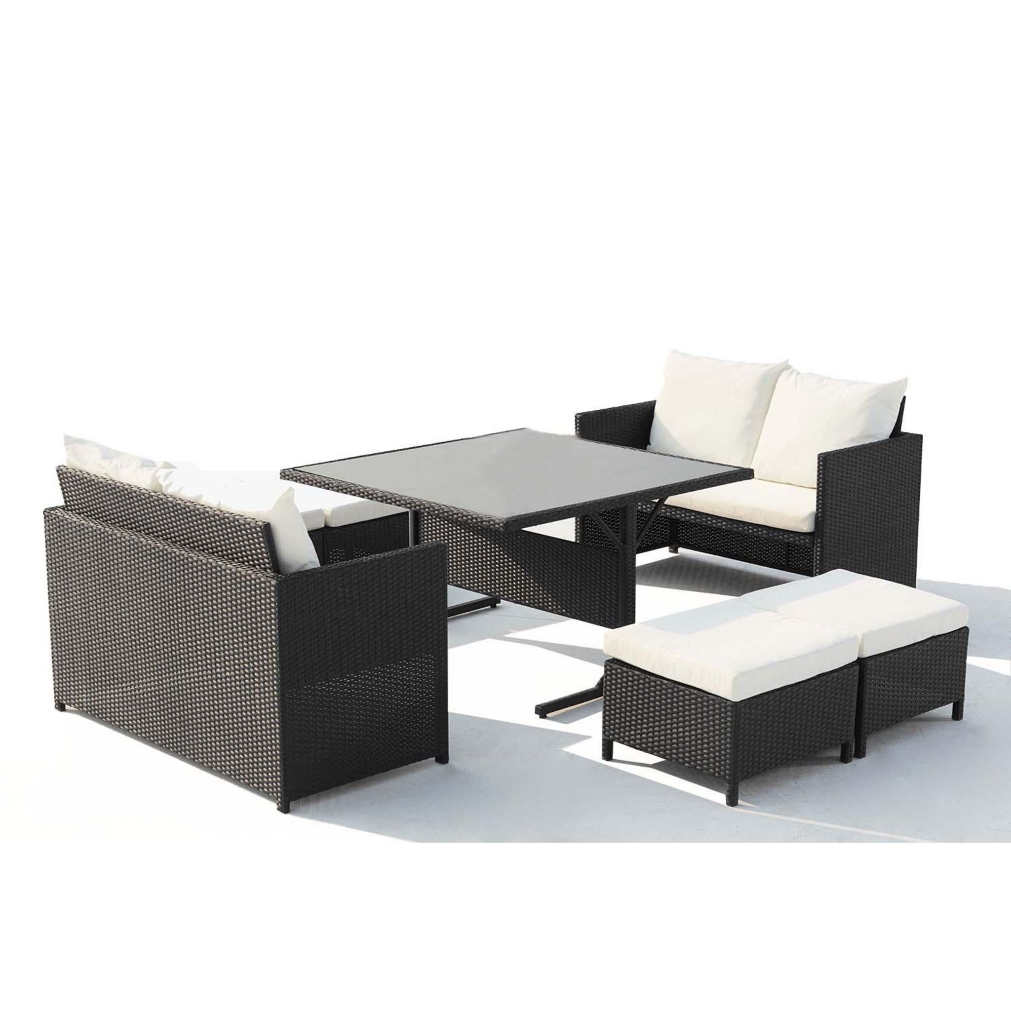 Envie d'un salon de jardin encastrable ? L'ensemble de jardin Noumea 8 places en resine tressee gris est en mesure de satisfaire vos envies. Compose de deux canapes 2 places et de 4 poufs confortables, il peut acceuillir jusqu'à 8 personnes. Sa table en verre trempe noir de 5 mm d'epaisseur est encastree dans le cadre en resine prevu à cet effet.