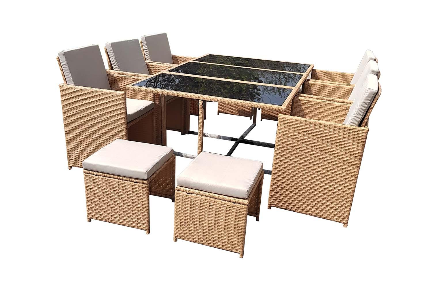 Salon de jardin encastrable résine tressée naturel 10 places FLORIDA