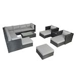 Salon de jardin modulable 13-14 places en résine tressée noir et gris STALLA