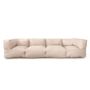 Caractéristiques techniques Couleur : BeigeNombre de places : 4 placesType : Assise relaxationConfort : Assise souple et enveloppanteRevêtement : Tissu spécial extérieurGarnissage : Mousse broyéeDensité garnissage : 25 à 30 kg/m3Traitement : DéperlantEmpilable : Oui, rangement facilitéPliable : NonH