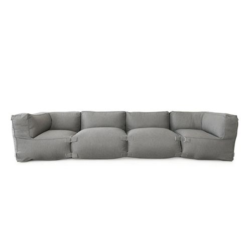 Caractéristiques techniques Couleur : GrisNombre de places : 4 placesType : Assise relaxationConfort : Assise souple et enveloppanteRevêtement : Tissu spécial extérieurGarnissage : Mousse broyéeDensité garnissage : 25 à 30 kg/m3Traitement : DéperlantEmpilable : Oui, rangement facilitéPliable : NonHo
