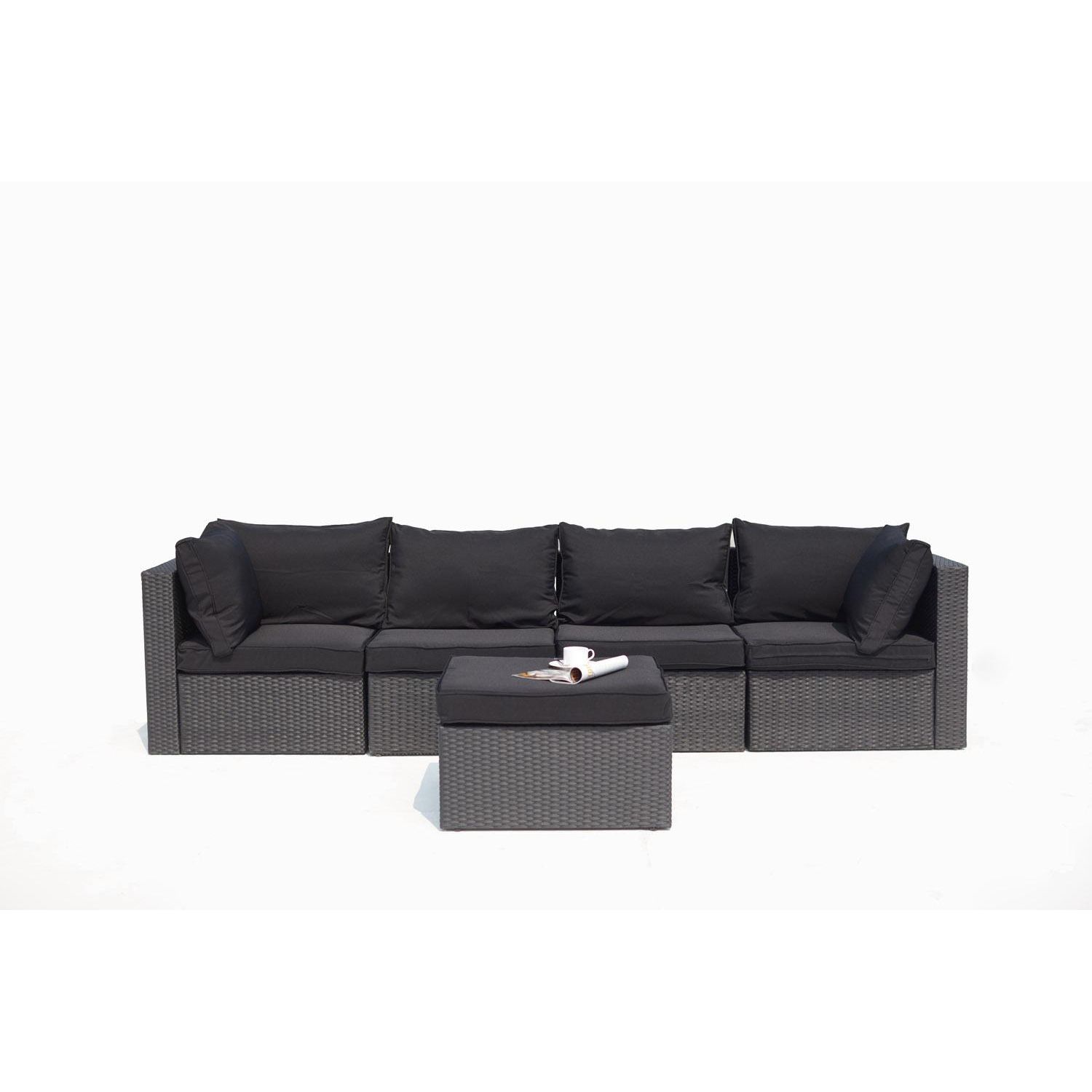Salon de jardin modulable 5 places en résine tressée noir MILANO