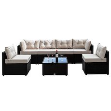 - Salon de jardin modulable : en U, face à face, en angle.