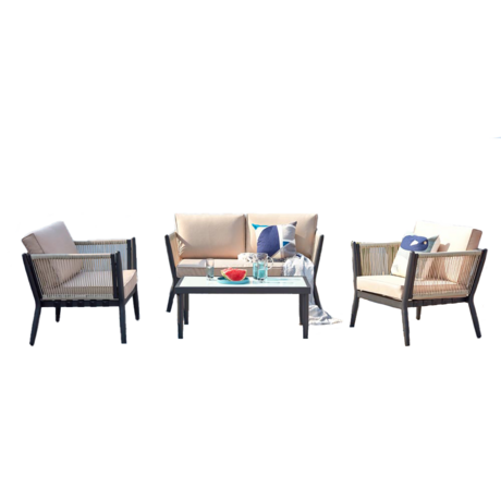 Salon jardin alu et corde écru-noir ANAHMA