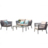 Caractéristiques techniques : Nombre de places : 4 Type de salon de jardin : Détente Couleur principale : Écru Couleur secondaire : Gris clair Forme de la table : Rectangle Matière : Cordes en résine Structure : Aluminium Matière plateau de table : Verre trempé Avec coussin : Oui Nombre de coussins