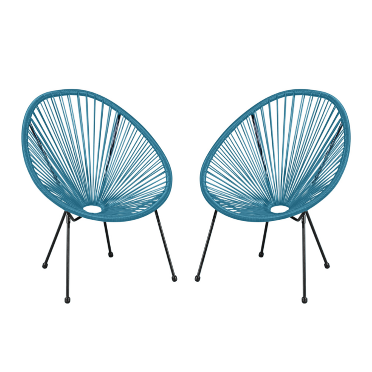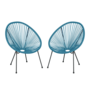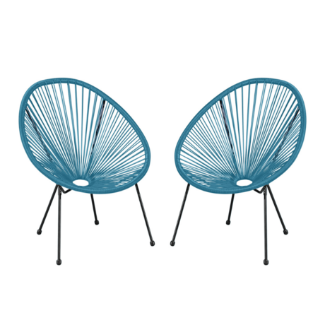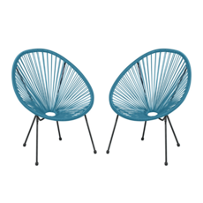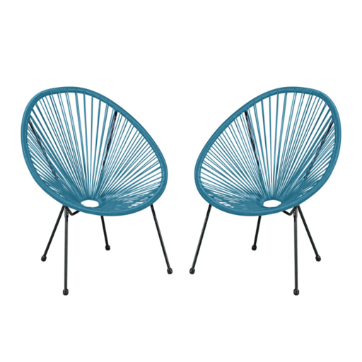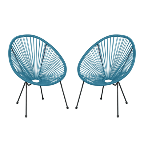 Apportez une touche d'élégance à votre espace extérieur avec le duo de chaises Acapulco. Leur couleur bleue est parfaite pour ajouter du style à votre jardin, terrasse ou balcon. Conçues avec une structure en acier robuste, elles bénéficient d'untraitement assurant une bonne protection au soleil et déperlant pour une durabilité accrue. Les assises, faites de cordes en polyéthylène, résistent aux intempéries tout en offrant un confort exceptionnel. Idéales pour les espaces restreints, ces chaises s'harmoniseront à merveille avec une décoration urban jungle, créant un coin cosy où il fait bon se détendre.