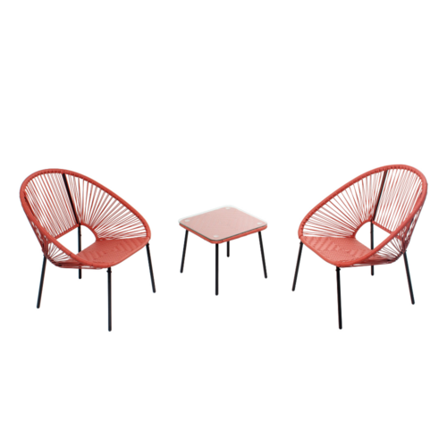 Découvrez le charme et l'élégance de l'ensemble Acapulco en couleur terracotta, une teinte chaleureuse qui invite à la détente et au plaisir. Fabriqué à partir de fils de polyéthylène, ce matériau flexible s'adapte parfaitement à votre morphologie, offrant une assise des plus agréables et confortables. Idéal pour une utilisation tant intérieure qu'extérieure, l'armature des fauteuils et de la table basse est faite d'acier avec une finition époxy, assurant une résistance exceptionnelle et une stabilité accrue grâce à une structure renforcée au niveau des pieds. La table basse fournie dans cet ensemble est parfaite pour avoir à portée de main tout ce dont vous avez besoin lors de vos moments de relaxation. Optez pour l'ensemble Acapulco en terracotta, où design et confort se rencontrent.
