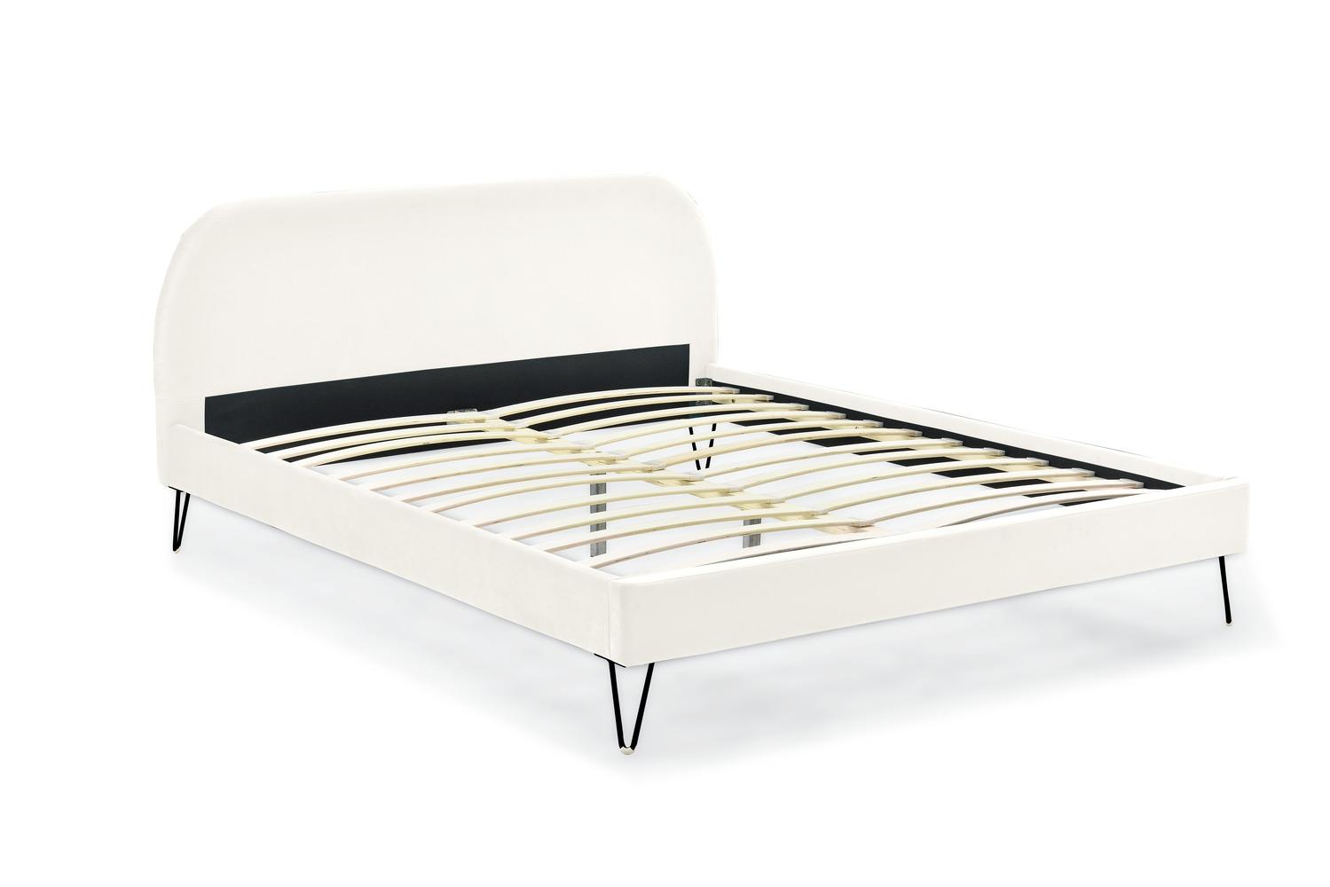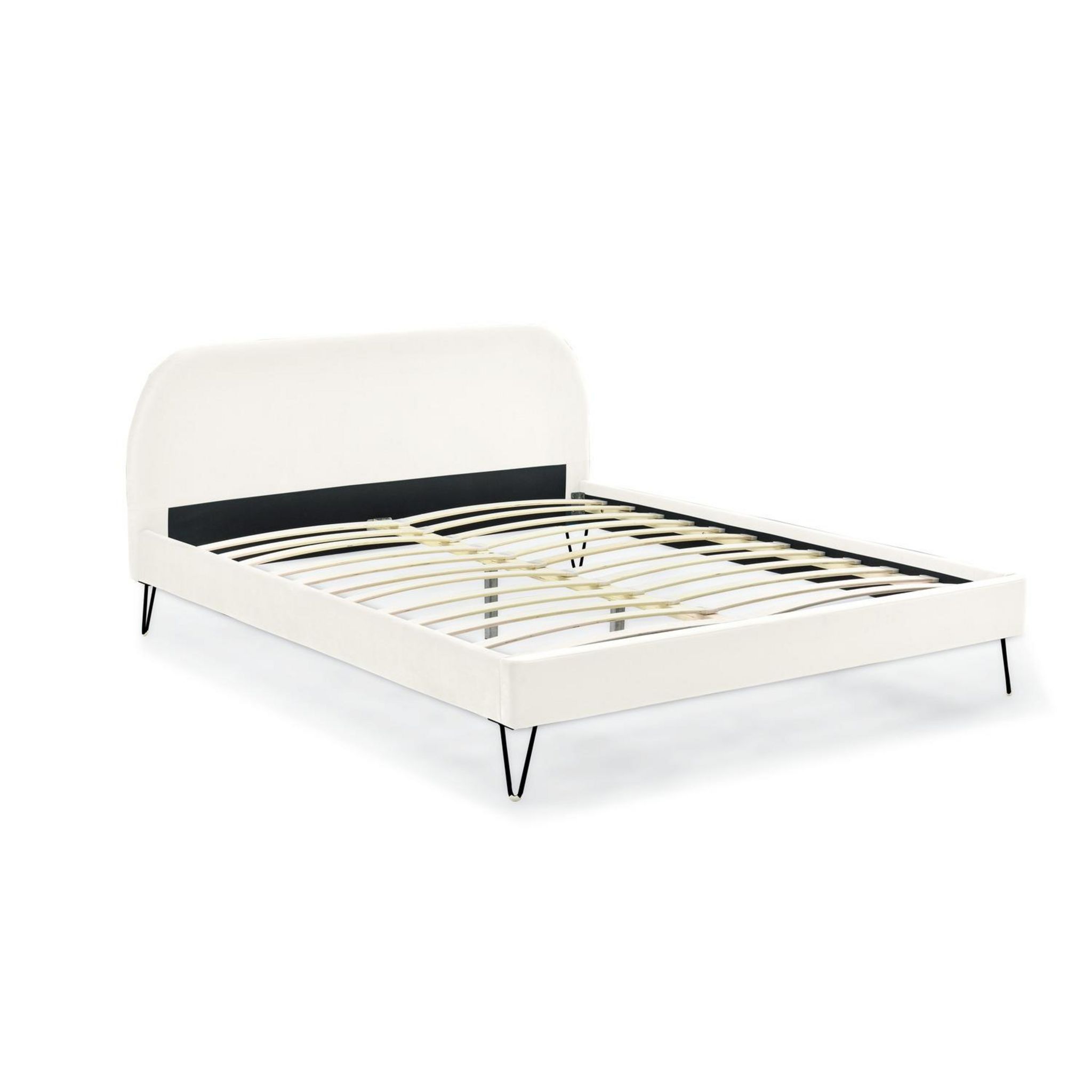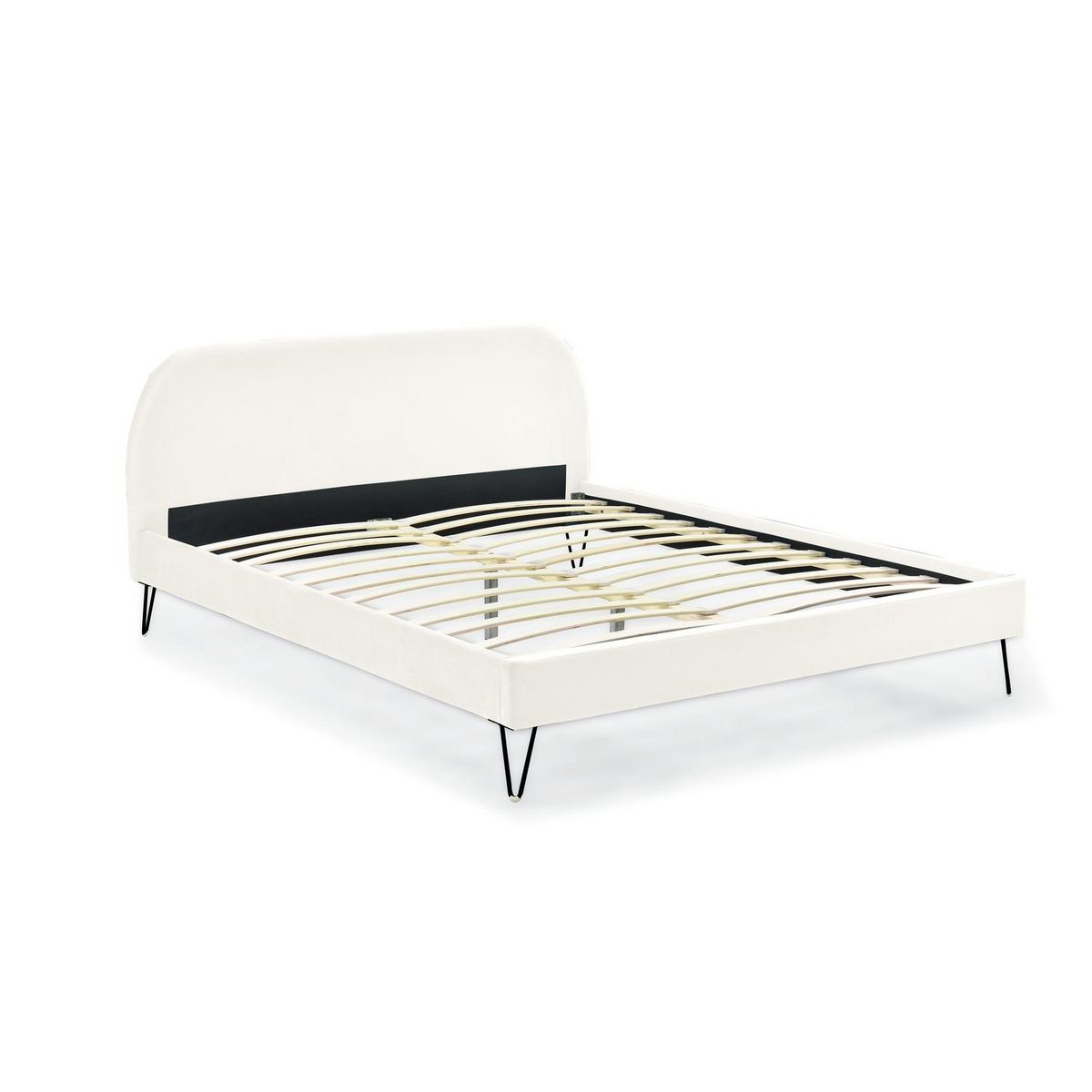 Ajoutez une touche de decoration à votre chambre avec ce joli lit aux lignes arrondies ! Ses finitions en velours beige et ses pieds epingles couleur noir le rende très tendance.