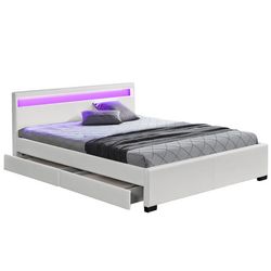Vous manquez d'espace de rangement dans votre chambre ? La structure de lit en simili (polyurethane) Enfield saura parfaitement resoudre ce problème. Cette structure de lit design pour 2 personnes en 140x190 cm avec tiroirs de rangement et LED integrees (4 couleurs disponibles pour l'ambiance de votre choix) est le compromis parfait entre confort optimal et gain d'espace important.