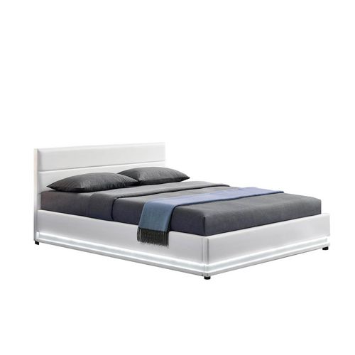 Des LED pour l'originalite, un coffre de rangement pour le côte pratique, un design moderne et seduisant, le cadre de lit New York satisfera vos envies.Caractéristiques Techniques :Couleur : BlancLit 2 places avec LED integrees : une couleur disponible1 coffre de rangement avec mecanisme à verinsLat