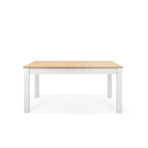 Decouvrez notre table extensible Skadar au style scandinave. Grâce à son extension discrètement rangee sous le plateau, elle peut confortablement accueillir jusqu'à 10 convives. Lorsque vous êtes en petit comite, l'extension de la table se range très facilement pour une meilleure optimisation de l'espace. Le mariage du bois clair du plateau et des pieds blancs apporte une ambiance fraîche et fonctionnelle à votre salle à manger.
