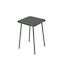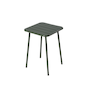 Caractéristiques techniques Nombre de places : 2Type de table de jardin : RepasCouleur principale : VertForme de la table : CarréMatière : Acier thermolaquéRésistance aux rayons du soleil et à la corrosionNombre de pieds : 4Déperlant : Oui, grâce aux lattes ajourées de la tableTable vendue sans chai
