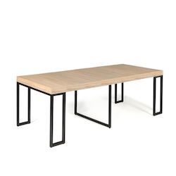 Caractéristiques techniques Nombre de places : jusqu'à 10 personnesCouleur : BoisCouleur principale : BoisMatière : Panneaux de particulesFinition : Mélaminé effet boisStructure : AcierExtensible : OuiConnecteurs : NonNombre de rallonges : 4EntretienLe nettoyage s'effectue simplement à l'aide d'un c