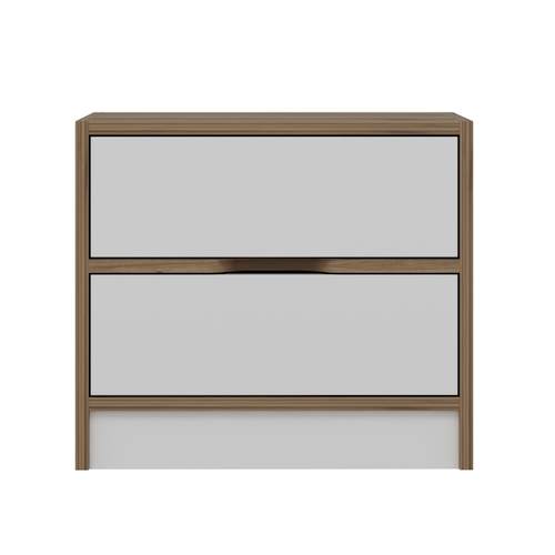 Table de chevet bois et blanc 2 tiroirs MOLDE