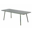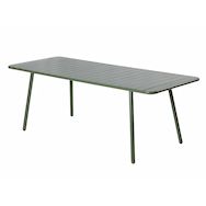 Caractéristiques techniques Nombre de places : 8 à 10 placesType de table de jardin : RepasCouleur principale : VertForme de la table : RectangleMatière : Acier thermolaquéRésistance aux rayons du soleil et à la corrosionNombre de pieds : 4Déperlant : Oui, grâce aux lattes ajourées de la tableTable
