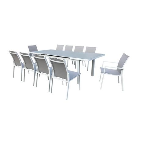 Table de jardin 8 chaises et 2 fauteuils en alu gris-blanc ELADA